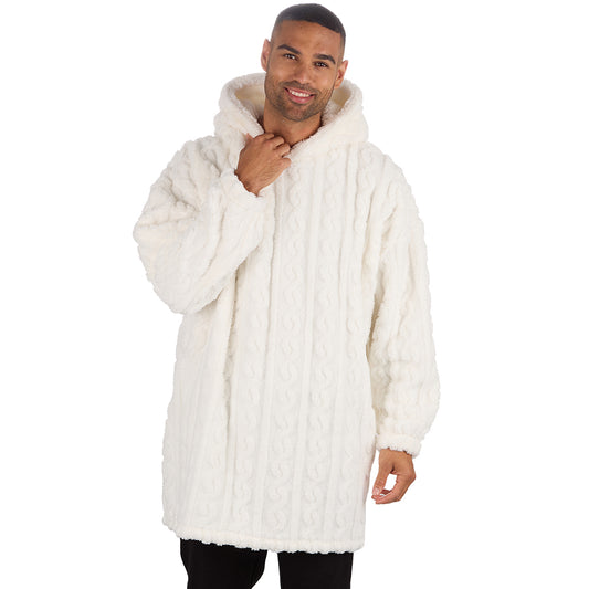 Mens Cream Cable Sherpa Fleece Blanket Hoodie