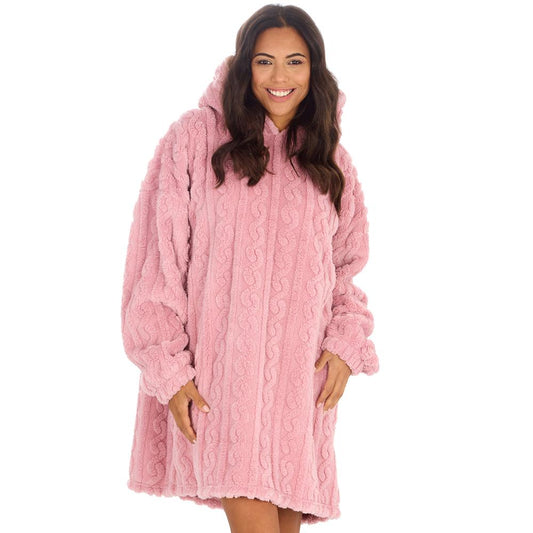 Ladies Pink Cable Sherpa Fleece Blanket Hoodie