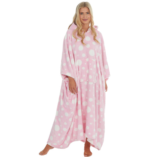Ladies Pink Spotted Poncho Hooded Blanket