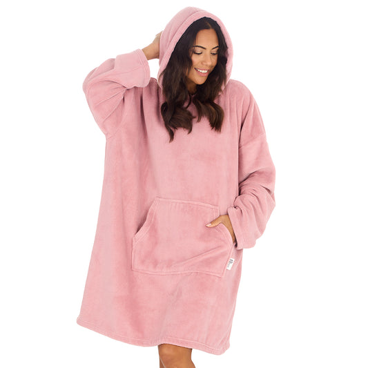 Ladies Blush Coral Fleece Blanket Hoodie