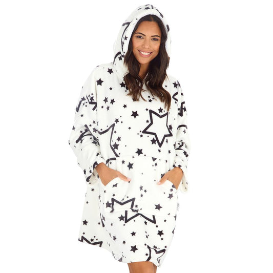 Ladies Stars White Blanket Hoodie