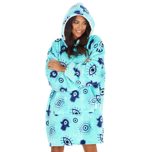 Ladies Evil Eye Aqua Blanket Hoodie