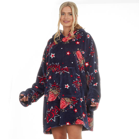 Ladies Popcorn Navy Blanket Hoodie