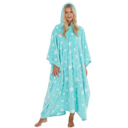 Ladies Mint Stars Poncho Hooded Blanket