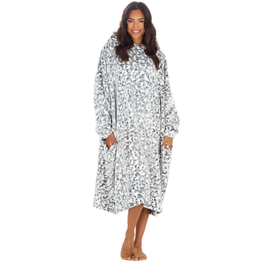 Ladies Leopard Longline Hooded Blanket