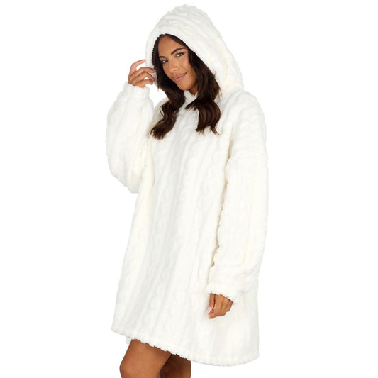 Ladies Cream Cable Sherpa Fleece Blanket Hoodie