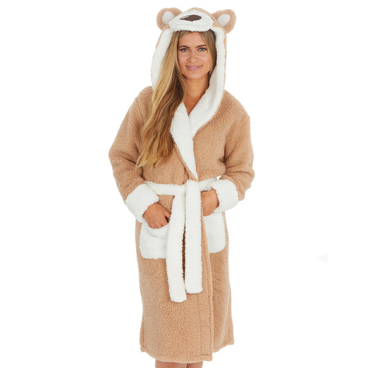 Ladies Teddy Bear Sherpa Fleece Dressing Gown