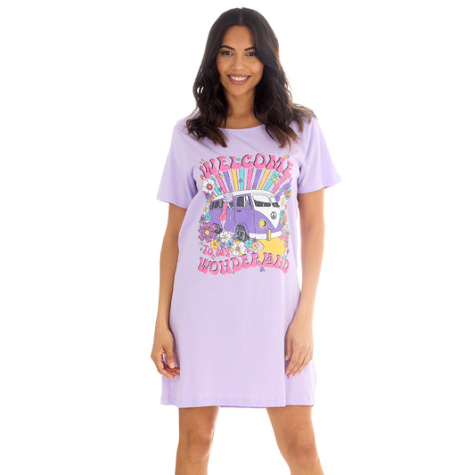 Ladies Vintage Wonderland Purple Cotton Sleep Tee