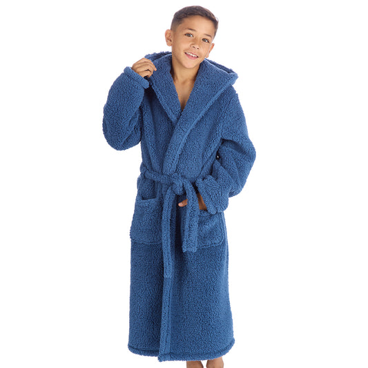 Girls Baby Blue Teddy Fleece Dressing Gown