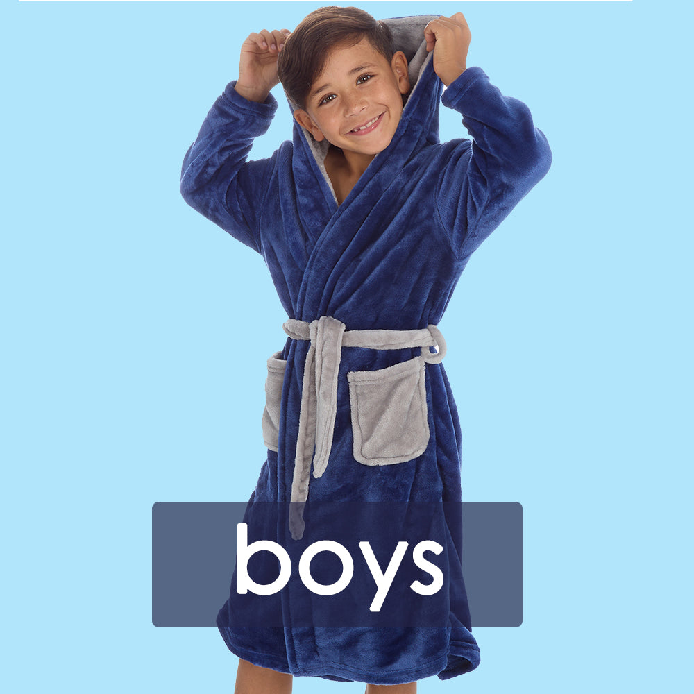 Snuggle up and get cozy with our fab assortment of adult's and kid's dressing gowns ! Explore a rainbow of hues and designs, uncover longline hooded robes, snuggle fleece house gowns, and shawl collar bathrobes!