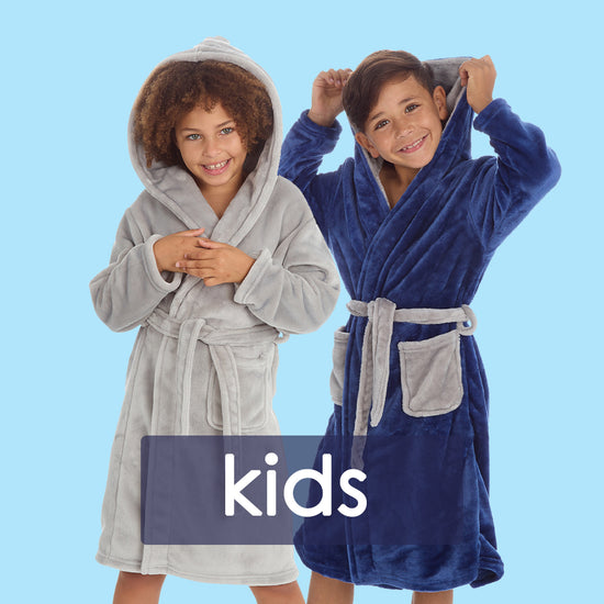 Snuggle up and get cozy with our fab assortment of adult's and kid's dressing gowns ! Explore a rainbow of hues and designs, uncover longline hooded robes, snuggle fleece house gowns, and shawl collar bathrobes!
