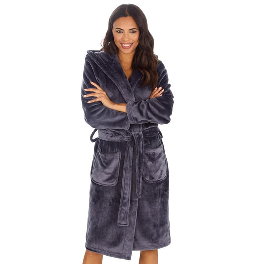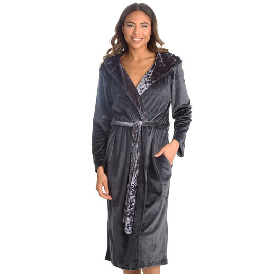 Ladies Luxury Velour Charcoal Dressing Gown