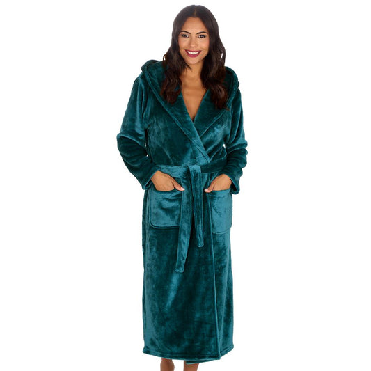 Ladies Teal Long Hooded Dressing Gown