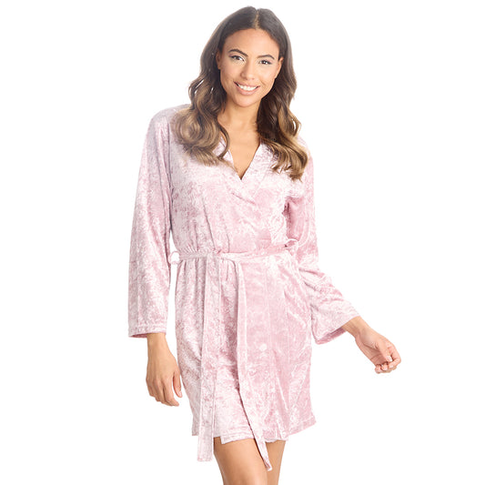 Ladies Luxury Pink Velvet Kimono Robe