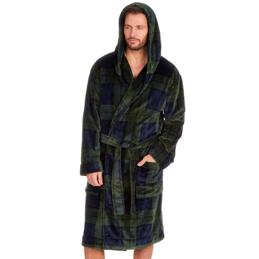 Mens Tartan Check Hooded Dressing Gown