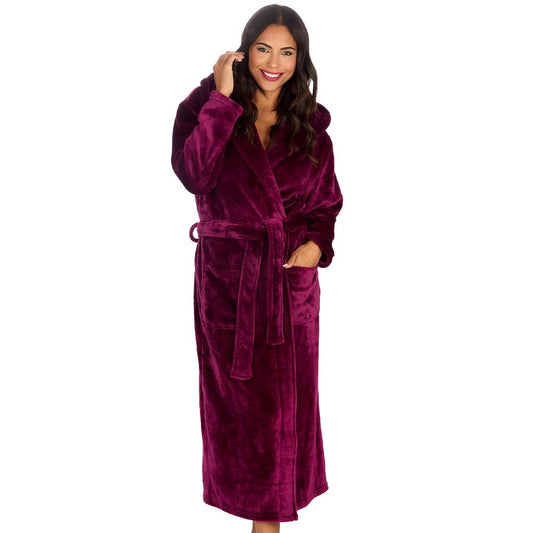 Ladies Burgundy Long Hooded Dressing Gown