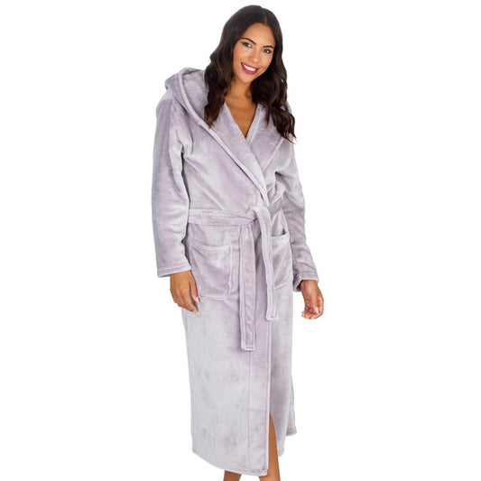 Ladies Silver Long Hooded Dressing Gown