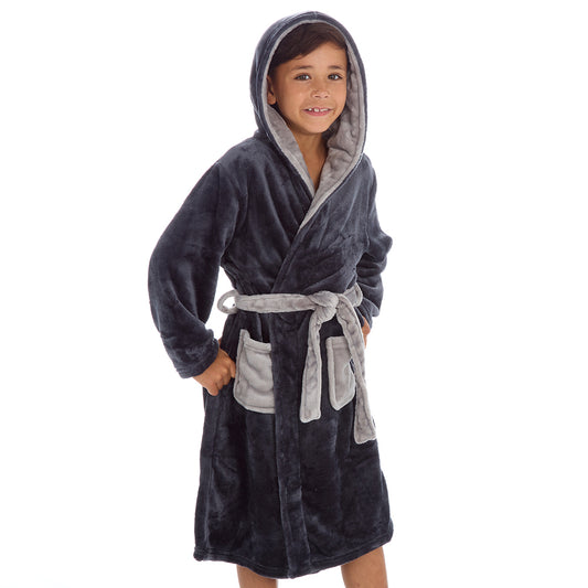 Boys Plain Charcoal Dressing Gown