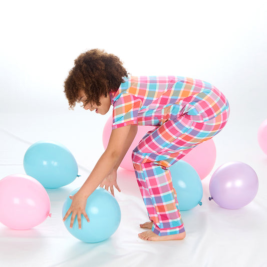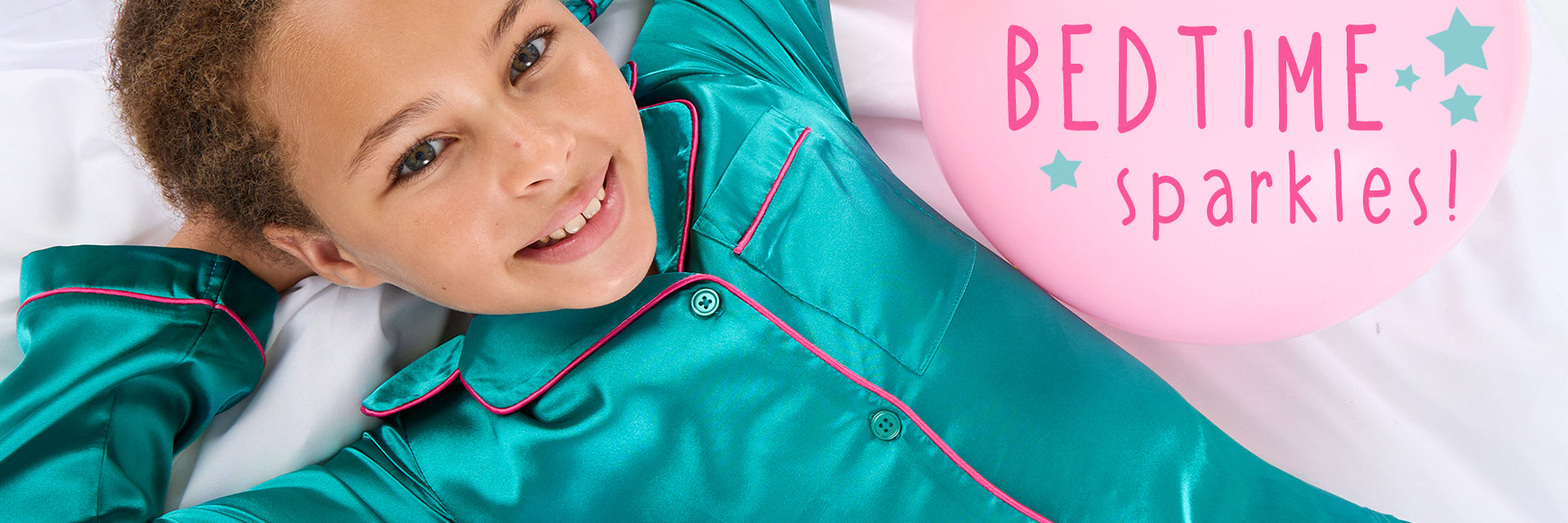 Say hello to our kids' nightwear collection - snuggly fleece pyjama set, fun lounge sets, and cosy bottoms made for giggles, cuddles, and chill time!