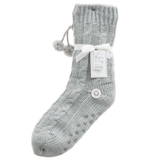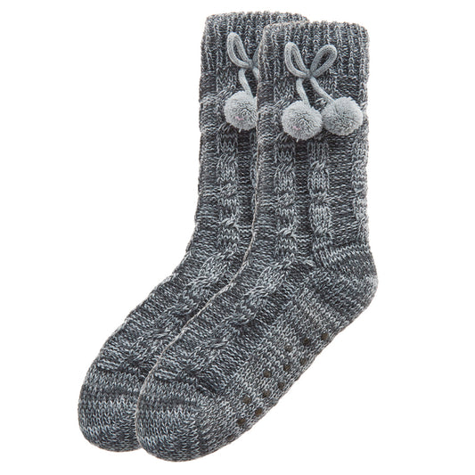 Ladies 2 Pairs Grey Stars Trainer Cosy Socks