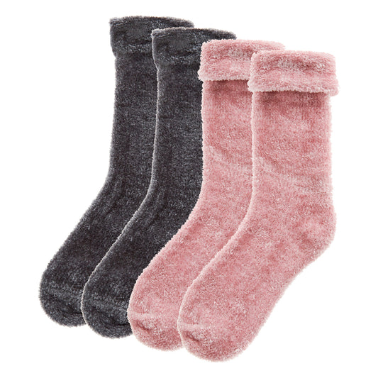 Ladies 2 Pairs Christmas Reindeer Fluffy Socks
