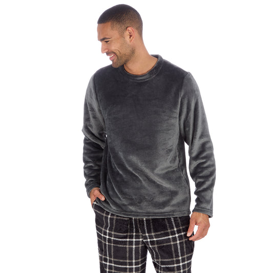 Mens Charcoal Check Fleece Pyjama Bottoms