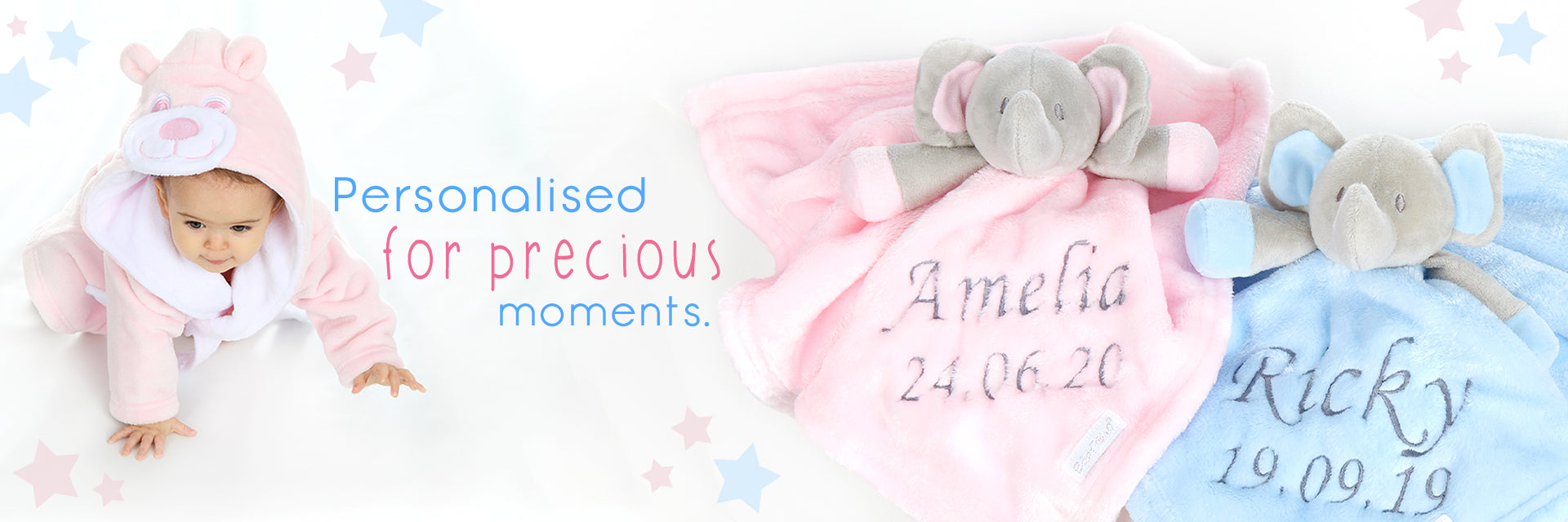Thoughtfully crafted for comfort and keepsake value, our personalised baby essentials are perfect for gifting or cherishing your your little one.