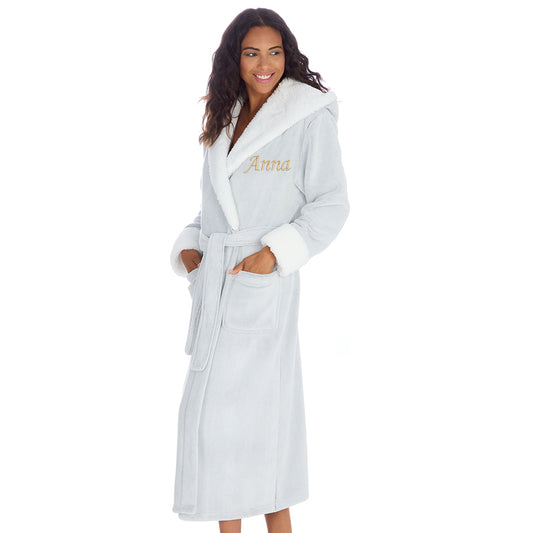 Personalised Ladies Frosted Grey Long Hooded Dressing Gown