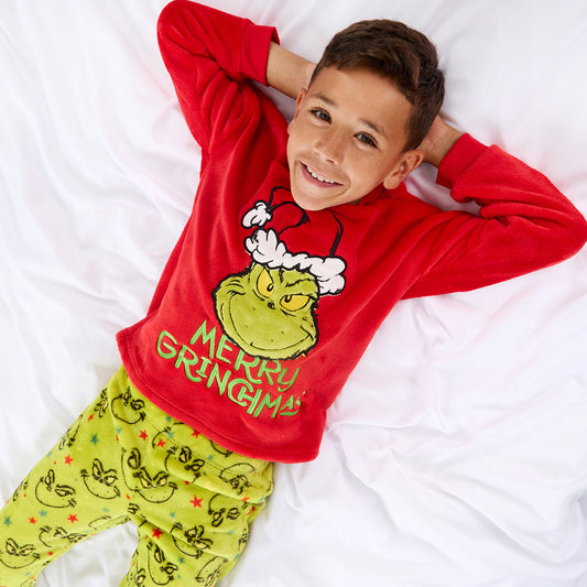 Boys Christmas Grinch Snuggle Fleece Pyjama Set