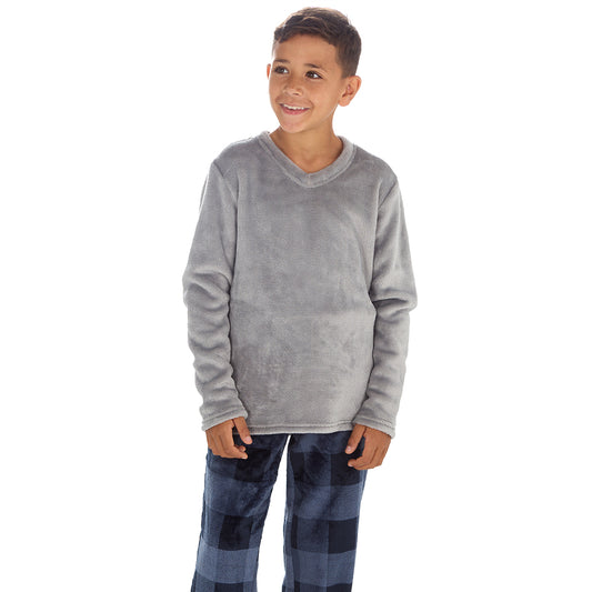 Boys Silver Check Fleece Pyjama Set
