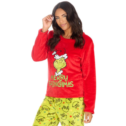 Ladies Christmas Grinch Snuggle Fleece Pyjama Set
