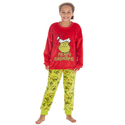Girls Christmas Grinch Snuggle Fleece Pyjama Set