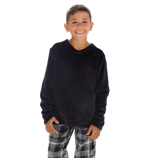 Boys Black Check Fleece Pyjama Set