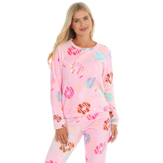 Ladies Pink Donuts Fleece Pyjama Set