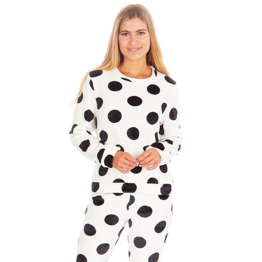 Ladies White Polka Dot Fleece Pyjama Set